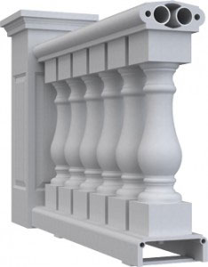 We have been manufacturing exterior composite balustrade systems for over 20 years. Our balustrades, manufactured using a rotational cast method, are made from a resinous marble matrix that is reinforced with fiberglass strand. Our casting method results in a reinforced hollow construction that will last a lifetime but will not cost an arm and a leg: In addition to the savings in materials and installation, you will significantly save by not needing to reinforce your structure to support the added weight of natural stone, cast stone, or concrete alternatives. Our systems weigh from 15 to 100 lbs per lineal foot depending on the configuration so they are very robust but, when compared to stone and concrete which are warrantied for no more than a few years, we are half to a third of the weight.