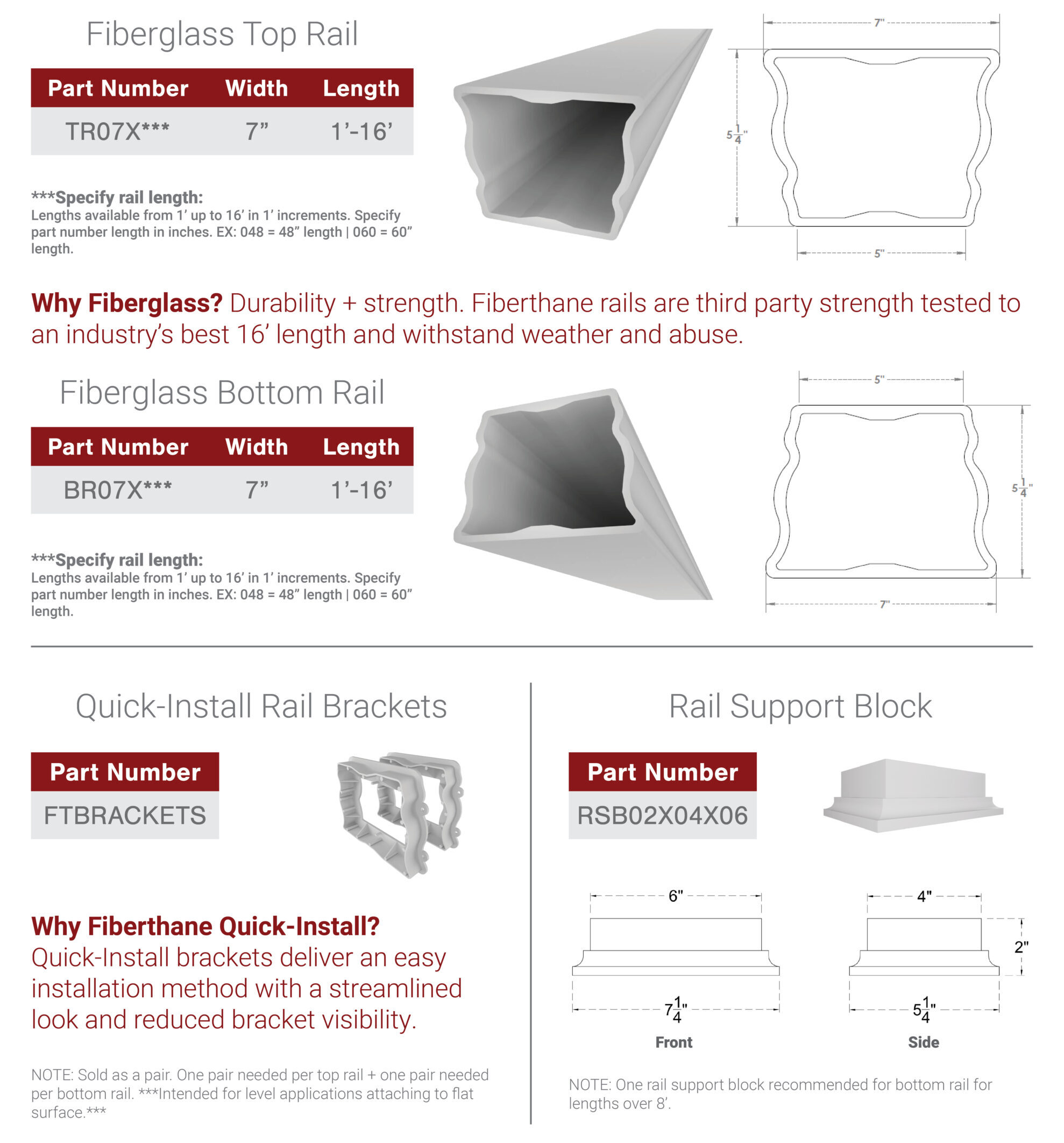 FiberThane® is the only light-weight system that can span 16’ lengths without needing a newel post or column. Not only is it the strongest system available, but with our QuickInstall brackets, it is also the quickest and easiest to install. Additionally, we made sure it is the most cost-effective system you will find!