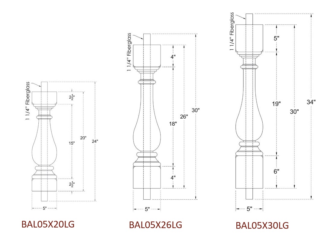 | BAL05X20LG | 5″ | 20″ | 6 1/4″ | 32 1/2″ |
