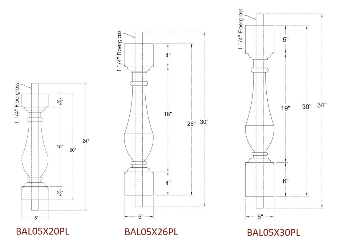 | BAL05X26PL | 5″ | 26″ | 6 1/16″ | 38 1/2″ |