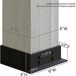 Our column wraps come in six different wood textures and are shipped unfinished ready for gel stain or paint; and can be easily trimmed to a specific height. Choose from two options of detachable bases included with the column wraps.