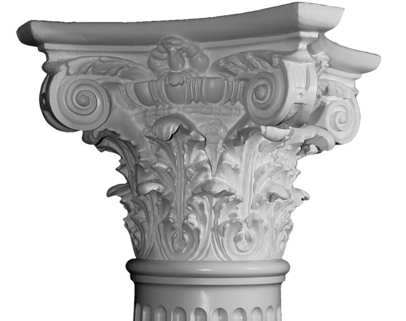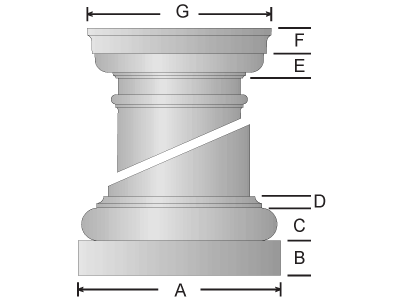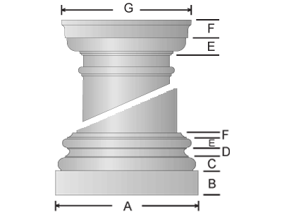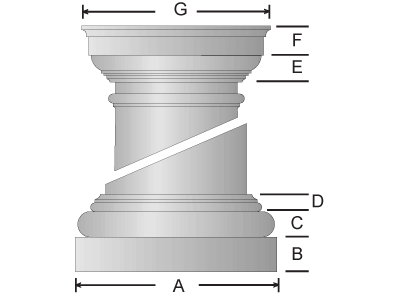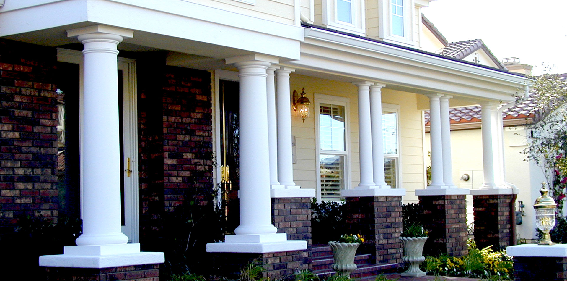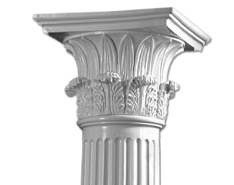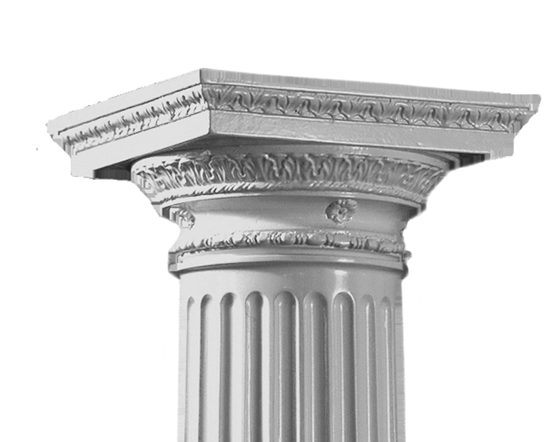 Tuscan Columns are available in fluted or unfluted versions. They may be ordered in Vignola’s architectural proportions or in custom combinations of column lengths and widths as well as in non-tapered cylinders. Square architectural columns and pilasters to match detail of round tapered columns are available.