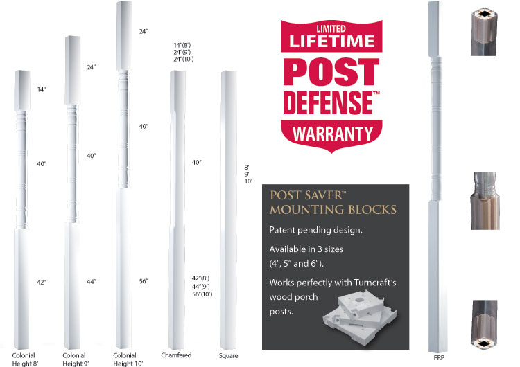 Our Porch Posts are beautifully turned from real wood. They come fully primed, ready for your paint, and come complete with a Limited Lifetime Warranty.